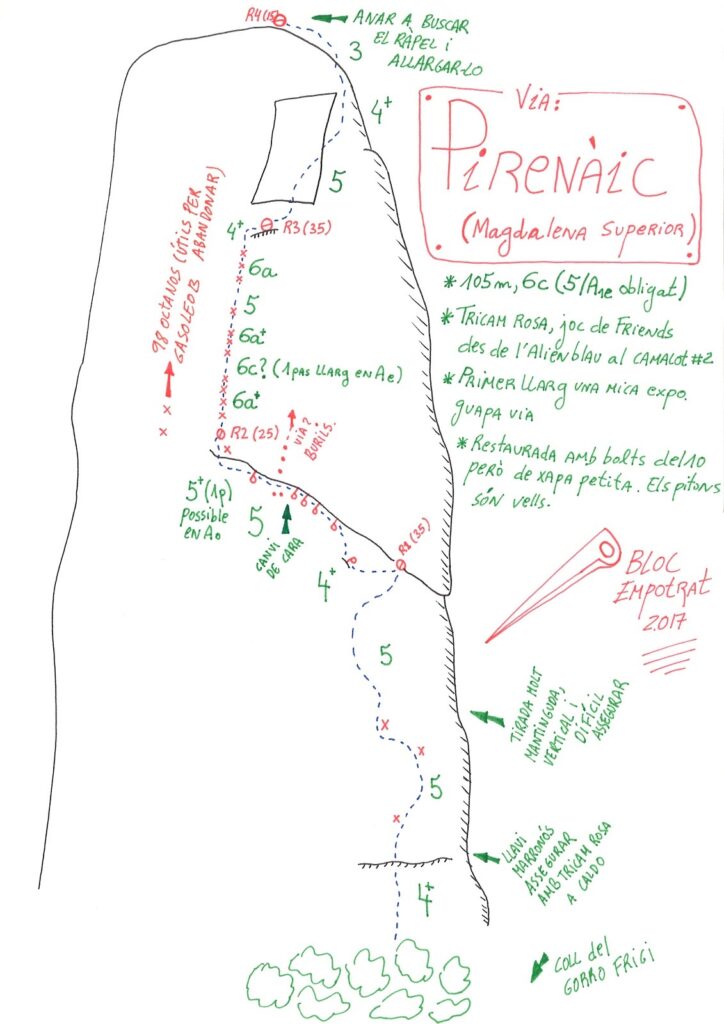 Ha de ser la millor via de Gorros per nassos. Els llargs fàcils estan molt poc equipats i s’ha de navegar i anar protegint, i l’Ae és un 6c desplomat amb molt bon canto i divertidíssim de fer. Què bé que hagi arribat fins ara sense ser xafada.
